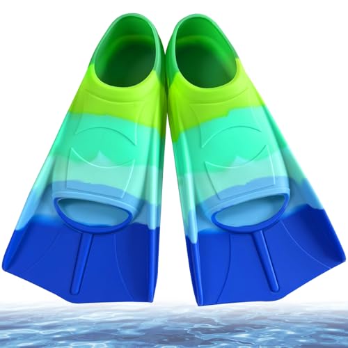 YushengTai simfenor barn, korta fenor barn, silikon snorkelfenor, korta dykfenor flickor, simfenor träning, fenor för pojkar flickor (ljusgrön, XXS)