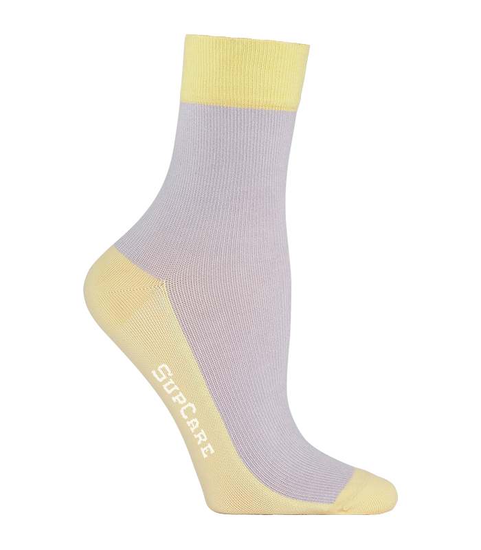 Korta stödstrumpor i bambu, lila och gul