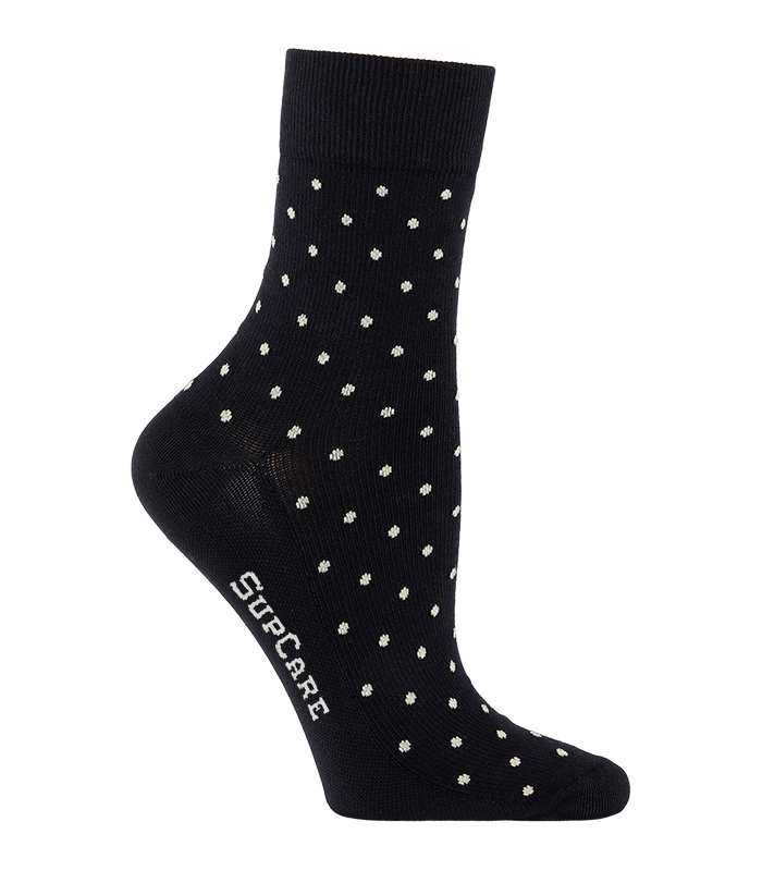 Korta stödstrumpor, svarta med vita prickar