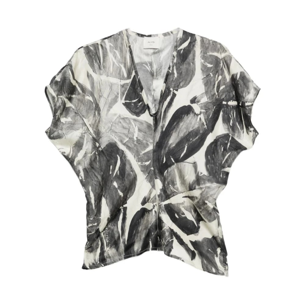Alysi, Blusar & Skjortor , Dam, S, V-ringad kortärmad blus i siden