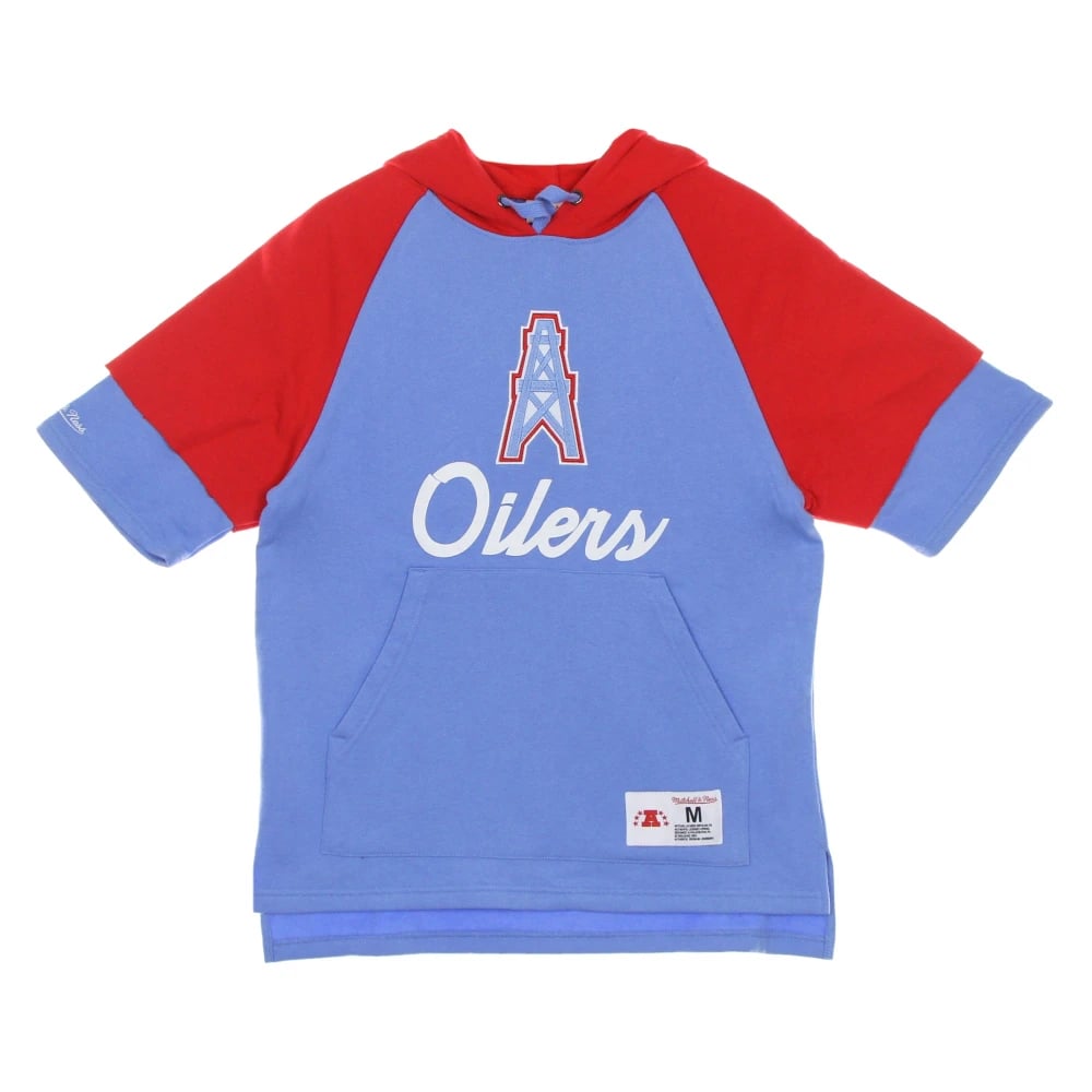 Mitchell & Ness, Sweatshirts & Hoodies , Herr, S, Bomull, Houston Oilers Kortärmad Hoodie Ljusblå