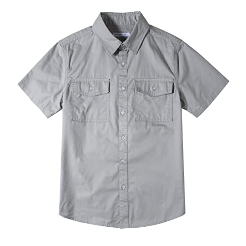 Tronjori Pojkar kortärmad skjorta, enfärgad fritidsskjorta bomull med två fickor för 5–14 år barn(16,Moon Gray)