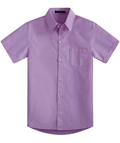 Spring&Gege Pojkskjorta, enfärgad, kortärmad skjorta i bomull för barn (3–12 år), lila, 11-12 År