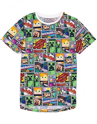 Minecraft T-shirt Overworld Steve Creeper pojkar barn kortärmad skjorta topp, flerfärgad, 7-8 år