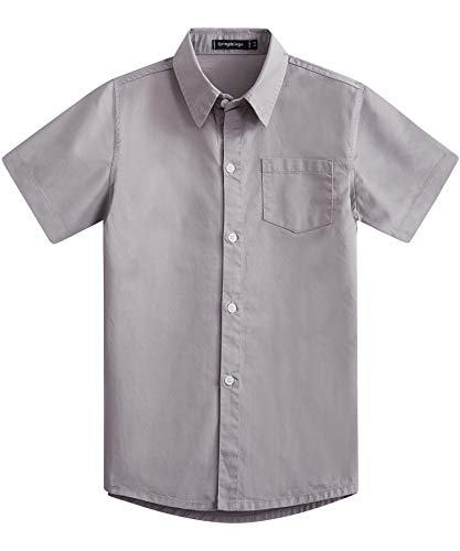 Spring&Gege Pojkskjorta, enfärgad, kortärmad skjorta i bomull för barn (3–12 år), silver, 9-10 År