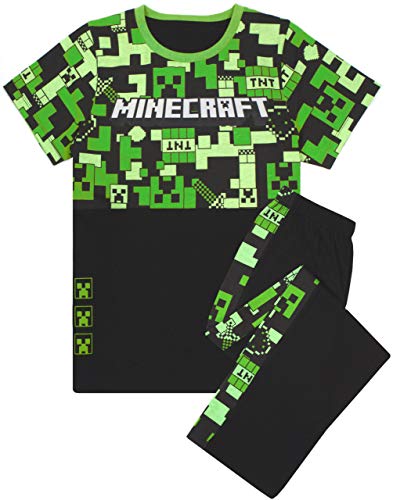 Minecraft-pyjamas för pojkar | barn lång- eller kortbyxor alternativ och spelare t-shirt | Creeper PJ set, varor gåvor, Kort, 9-10 Years