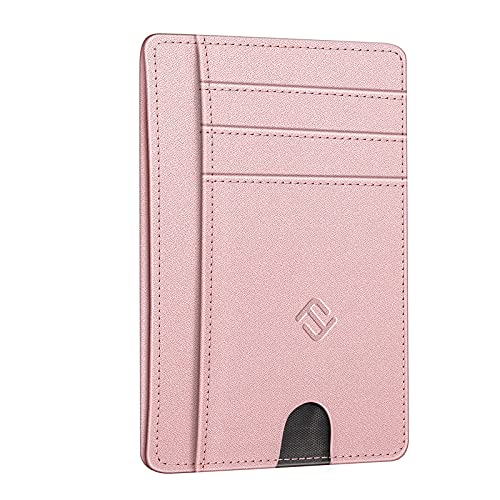 Fintie platt plånbok kortfodral, premium konstläder, RFID-blockerare, smal plånbok, kreditkortsfodral med ID-fönster och snabbåtkomstfack för män och kvinnor, roséguld
