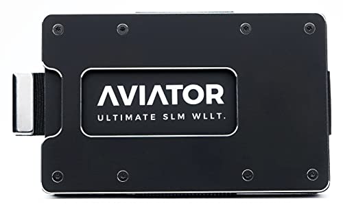 Aviator Slim Wallet Obsidian Black Slide – Minimalism plånbok plånbok för kvinnor och män – kortfodral med myntfack och kontantrem – RFID – Made in Germany – aluminium – designpris, Obsidian svart,