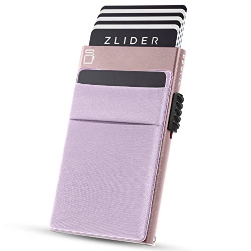 ZLIDER Kortfodral herr med myntfack | kreditkortshållare smal plånbok | korthållare med RFID-plånbok | mini kreditkortsfodral modern av aluminium | smart portmonnä män kvinnor plånbok, Roséguld,