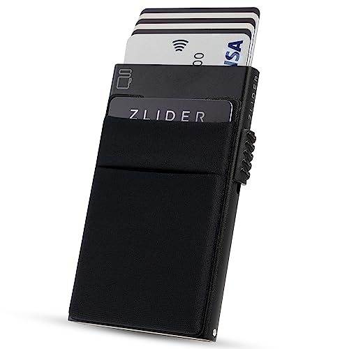 ZLIDER Kortfodral herr med myntfack | kreditkortshållare smal plånbok | korthållare med RFID-plånbok | mini kreditkortsfodral modern av aluminium | smart portmonnä män kvinnor plånbok, Svart med grå