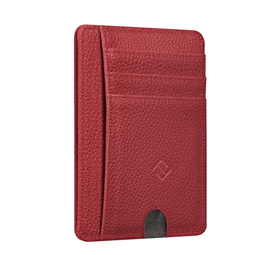 Fintie platt plånbok kortfodral, premium konstläder, RFID-blockerare, smal plånbok, kreditkortsfodral med ID-fönster och snabbåtkomstfack för män och kvinnor,vallmo