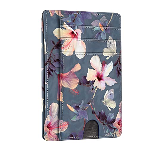 Fintie platt plånbok kortfodral, premium konstläder, RFID-blockerare, smal plånbok, kreditkortsfodral med ID-fönster och snabbåtkomstfack för män och kvinnor, blommande hibiskus