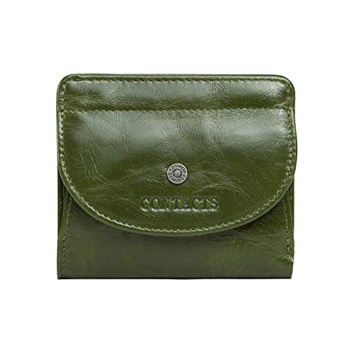 FANDARE Läderplånbok plånbok kreditkortsfodral herr dam kort plånbok med myntficka kortfodral kreditkortshållare börs, Grön, L