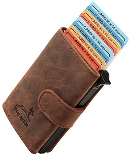 Fa.Volmer ® POP-UP kortfodral av äkta läder med/utan myntfack för män och kvinnor | max. 11 kort | RFID-skydd | plånbok VO24/31, BRUN, M, Minimalistisk