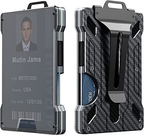 Brickhållare i metall, sedelklämma i kolfiber, ID-kortfodral med synligt fönster, RFID-blockerande kreditkortshållare, plånbok för män och kvinnor (mattsvart)
