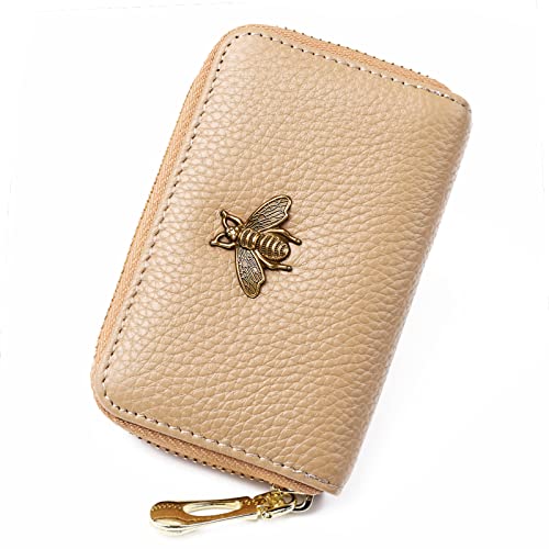 imeetu RFID kreditkortshållare, liten läder dragkedja kortfodral plånbok för kvinnor, B-khaki, S, klassisk