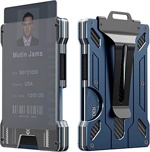 Swygoo Brickhållare i metall, sedelklämma i kolfiber, ID-kortfodral med synligt fönster, RFID-blockerande kreditkortshållare, plånbok för män och kvinnor (mörkblå)