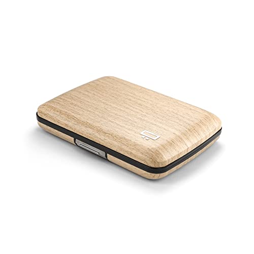 Korthållare i aluminium med metallås, RFID skydd mot bedrägeri och avmagnetisering, kompakt plånbok, Smart Case OSLO modell (Effekt Bambu)