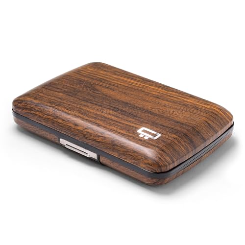 Korthållare i aluminium med metallås, RFID skydd mot bedrägeri och avmagnetisering, kompakt plånbok, Smart Case OSLO modell (Effekt Sequoia)