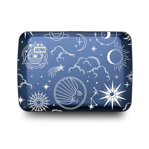 Korthållare i aluminium med metallås, RFID skydd mot bedrägeri och avmagnetisering, kompakt plånbok, Smart Case OSLO modell (Gravering Astral)