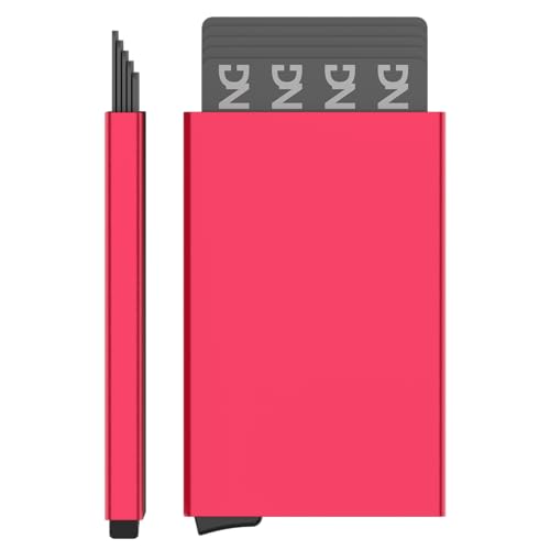 DarNova RFID-skyddande metallkorthållare - automatisk korthållare i aluminium för män och kvinnor minimalistisk plånbok för kort, ID och dokument - snygg design, Röd röd, 9,5 x 6 cm, Minimalistisk