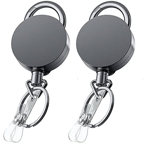 2 st infällbara karbinhake nyckelringar, utdragbar infällbar nyckelring, indragbar ID-korthållare nyckelring med 68 cm ståltrådsrep - svart, svart, one size