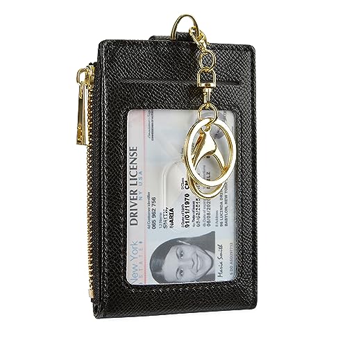 Cynure kvinnor och män läder RFID-blockerande korthållare smal liten dragkedja nyckelring framficka plånbok med 2 ID-fönster, 1-enkel svart