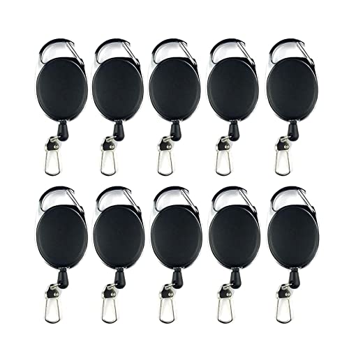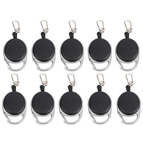 Dilwe Infällbar nyckelring, ID jojo, utdragbar nyckelkedja, ID-korthållare med 60 cm nylontråd, metallklämma för utomhusbruk (10 st), 10 st, L