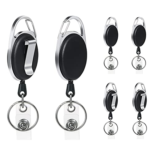 Vicloon Märkesrulle, 6 St Märkesbindningar Med Klämmor, Rullklämmor, Utdragbar Märkeshållare Med Nyckelbältesrulle För Nyckelring, Id-Korthållare Och Bältesklämma (Svart)