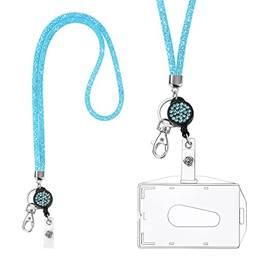 Vicloon Kristallnyckelband, kristallnyckelhalsband med transparent ID-korthållare, band med nyckelring, ID-korthållare, märkessats för nyckelring och legitimation - ljusblå