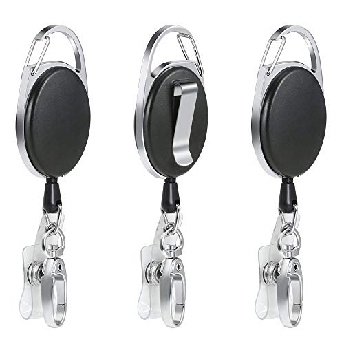 Vicloon Märkesrulle, 3 st rullklämmor, infällbar märkeshållare med nyckelbältesrulle för nyckelring, ID-korthållare