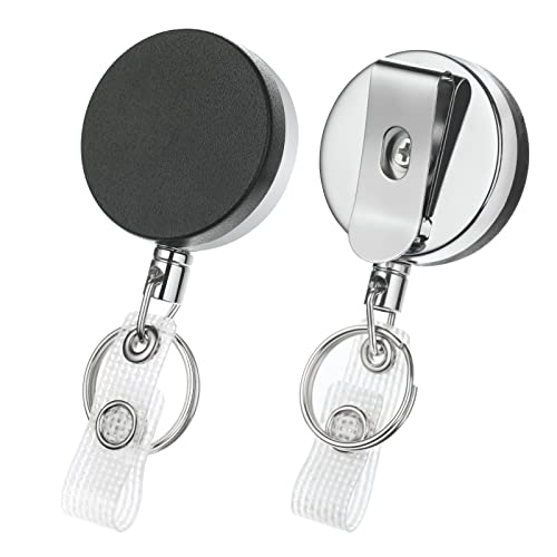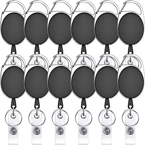 YTBUBOR 12 st svarta infällbar nyckelring bricka korthållare, 60 cm/23,6 tum retraktil nyckel bricka rulle sladdklämma med bältesklämma och nyckelring