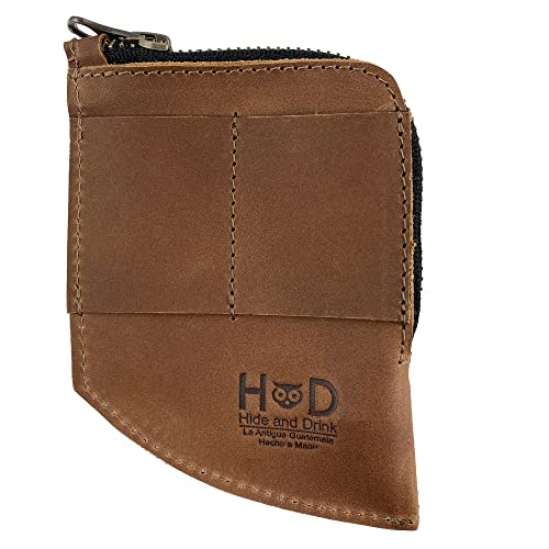 Dölj och dryck, EDC fickplånbok, böjd kassaförvaring, smal främre korthållare, sedelklämma, fullnarvigt läder, handgjorda resetillbehör, Single Malt Mahogny, Single Malt Mahogany, Rustik