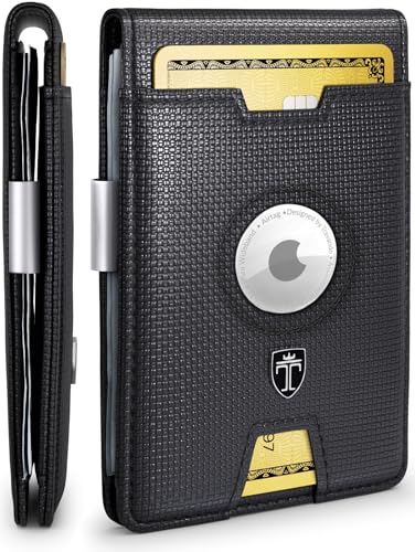 TRAVANDO AirTag* plånbok för män med sedelklämma luftlapp plånbok korthållare RFID-blockerande dubbelvikt gåvor för män, kol, minimalistisk