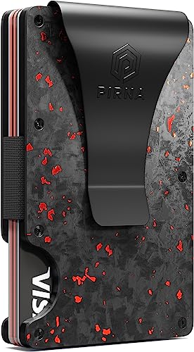 Smal RFID-blockerande minimalistisk kortplånbok för män, tunn framficka plånbok med sedelklämma, äkta smidda kolplånböcker för män i Storbritannien med presentask, 07 Smidd röd, S, Korthållare