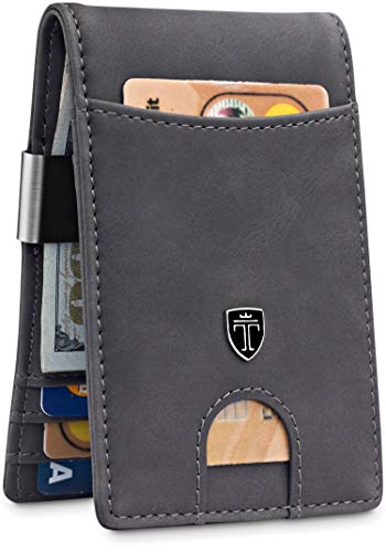 TRAVANDO sedelklämma plånbok Rio – herrplånböcker smal framficka RFID-blockerande korthållare minimalistisk mini bifold presentförpackning – grå – liten