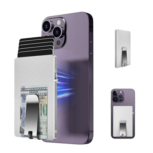 MPVWALT magnetisk korthållare för MagSafe-plånbok, popup smal metall minimalistiskt kortfodral för telefonen, Silver – smal plånbok med sedelklämma, Schlanke Geldbörse mit Geldklammer, Minimalistisk