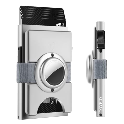 TOYFID smal plånbok för män metall korthållare plånbok, minimalistisk pop up herrplånbok, RFID-blockerande visitkortsfodral plånbok med baksida och kontantband för snabb kortåtkomst, Silver med