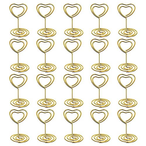 Lahviuu Bordskorthållare, 20 stycken korthållare, menykorthållare, fotohållare av metall, platskorthållare, klämma, memohållare, bord, nummerhållare, för bröllop, fest, kontor, restaurang (hjärta)
