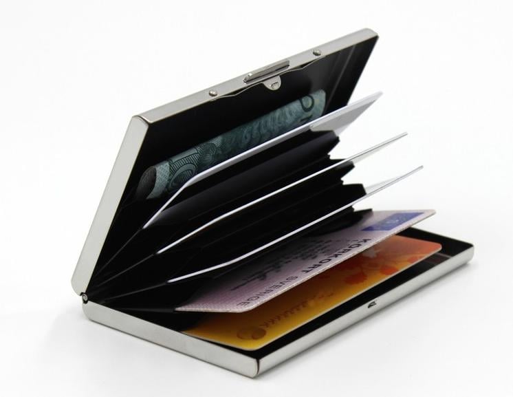 Korthållare med fack - Skyddar RFID - metall - plånbok