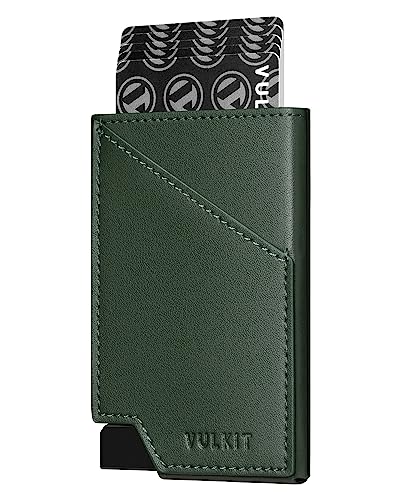 VULKIT Kreditkortshållare Plånbok RFID Blockerande Smal Aluminium Metall Bank Pop-up Korthållare Fodral med Business Money Ficka för kreditkort Sedlar och Mynt (Grön)