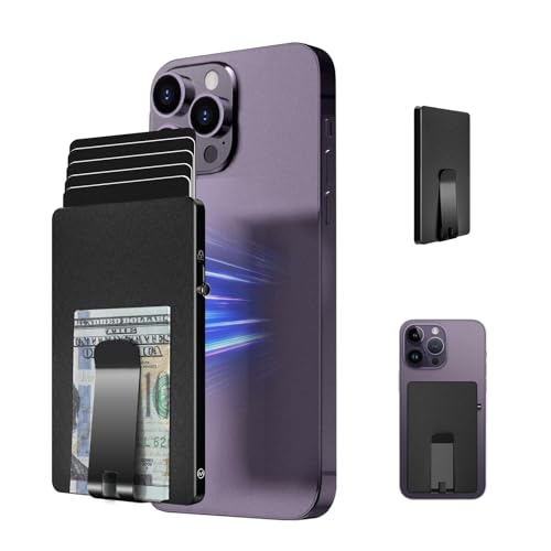 MPVWALT magnetisk korthållare för MagSafe-plånbok, popup smal metall minimalistiskt kortfodral för telefon, Svart - smdl plånbok med sedelklämma