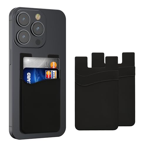 Kwmobile Stick-on korthållare för telefon (set med 3 silikonkorthållare plånbok med dubbla fack - fäster på telefonens baksida - svart/svart / svart