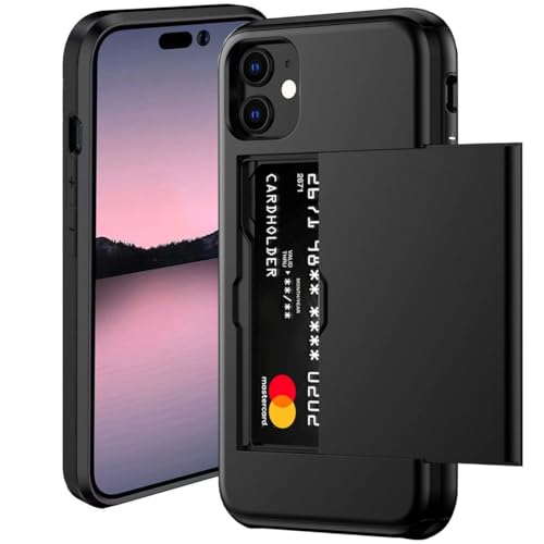 JETech Plånbok Skal för iPhone 12/12 Pro 6,1 Tum med Korthållare, Dual Layer Stötskyddad Skyddande Telefon Wallet Case with Card Holder, Glidande Dold Spår (Svart)