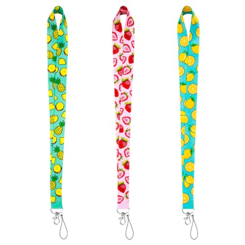 cobee ID nyckelband, rem, märkesband, nyckelband, sött, mönster, snodd för telefon, väska, ID-korthållare, nyckelring, snodd för kvinnor, män, barn (3 st, frukttryck, serie nyckelband), 3 st,