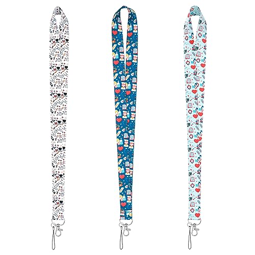 Amaxiu 3 st sjuksköterska märkesrem, hållbar nackband för ID-bricka, nyckelring, sött mönster för telefon, plånbok, ID-korthållare, USB-blixt
