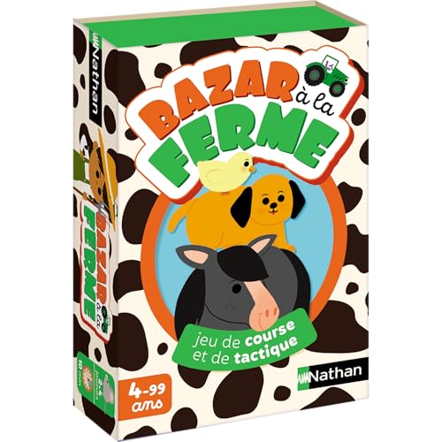 Nathan - Basar på gården, kortspel för barn från 4 år, strategiskt och taktiskt spel, djurtema, gör den högsta pyramiden, enkla regler, familj och barn, 2 till 4 spelare