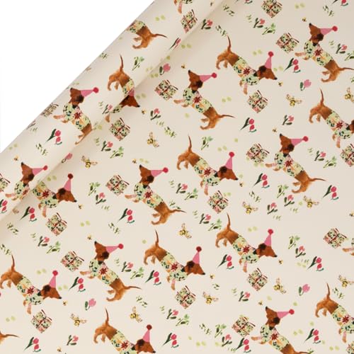 Glick Roll Wrap, födelsedag korv hund blommig, omslagspapper 4 meter x 70 cm, lämplig för födelsedagar och andra firanden
