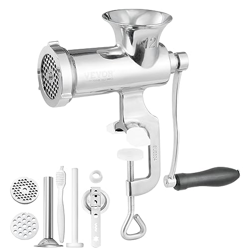 VEVOR Manuell köttkvarn, 304 rostfritt stål handköttkvarn med stålbordsklämma, köttkvarn korvtillverkare & 2 skärplattor, kakfäste, korvrör för nötkött peppar svamp cookie