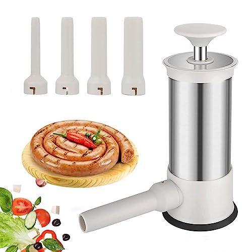 Bocguy Korvstoppare rostfritt stål, korvstoppningsmaskin, manuell korvstoppare med 4 korvstoppare, korvstoppare för hushållet lämplig för familjemåltider, restauranger, barer, camping